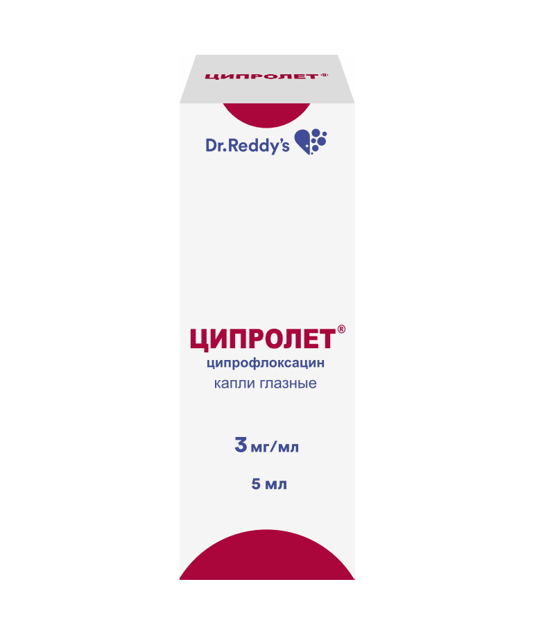 Ципрофлоксацин. Биодоступность — 50–85%, Vd — 2–3,5 л/кг, связывание с белками плазмы — 20–40%, Tmax после приема внутрь — 60–90 мин, Cmax после приема внутрь 500 мг — 0,2 мкг/мл.