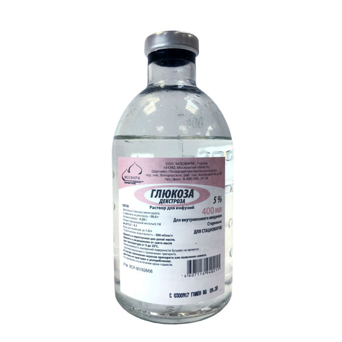 5% раствор декстрозы оказывает дезинтоксикационное, метаболическое действие, является источником ценного легкоусвояемого питательного вещества. При метаболизме декстрозы в тканях выделяется значительное количество энергии, необходимой для жизнедеятельности организма.