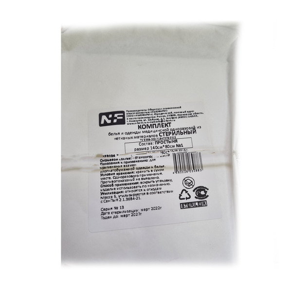 ПРОСТЫНЯ ХИР.СТЕР. СПАНБОНД 70Х80СМ №1/ньюфарм