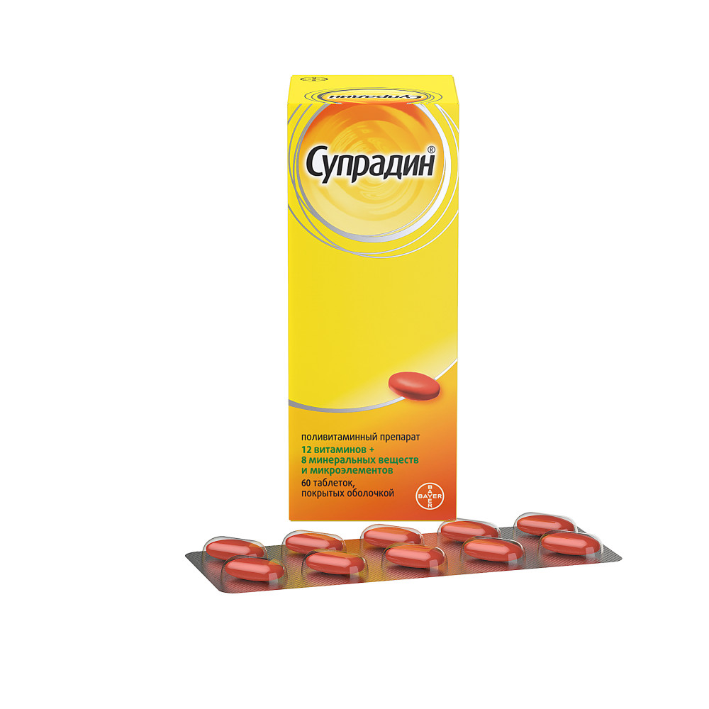 Супрадин® содержит 12 витаминов в сочетании с минералами и редкими элементами, являющихся важными факторами метаболических процессов.