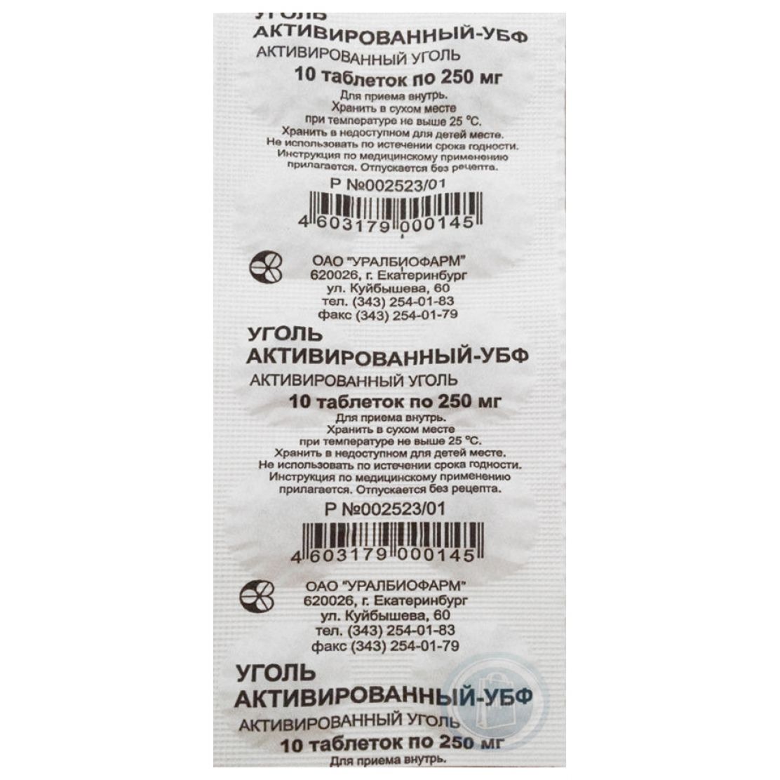 Уголь активированный таб. 250мг №50/Фармстандарт